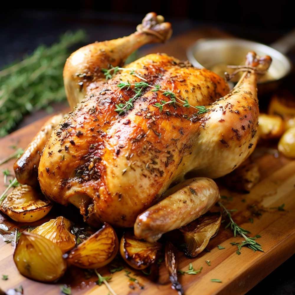 For succulent rotisserie chicken, baste with Maitre d’Butter to infuse with rich garlic flavor.